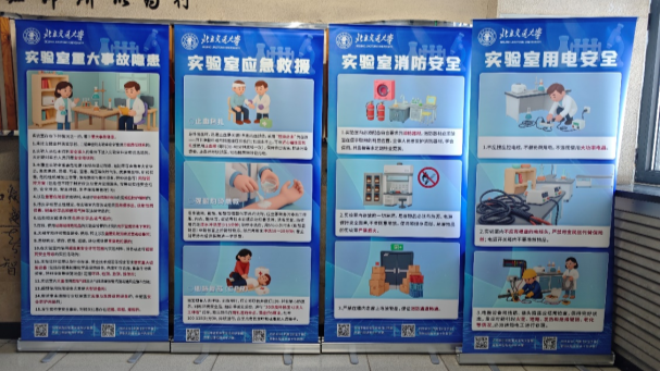 设计制作实验室安全警示教育海报一套共29张,并依据各二级单位学科特点、实验室类型等情况进行发放。各单位积极响应,将海报分别展示于教学楼、实验室的醒目位置,有效营造全校关注实验室安全的浓厚氛围,为实验室安全工作的顺利开展奠定坚实基础。